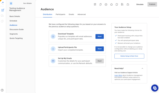 Email invitations through Remesh if you'd like to leverage our default email templates, timing and settings based upon our best practices quickly and easily or choose to email invites on your own if you have an existing system for contacting your participants.