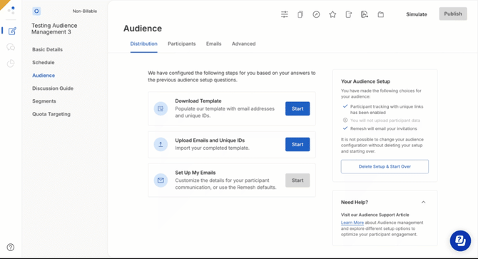 If you’ve chosen to manage your participant email communication through Remesh, you can reference our document about managing emails to learn all about how to set up and manage your participant emails.