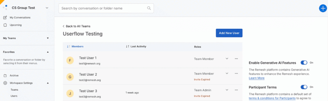 - Name your team, select your Generative AI/Participant Terms settings, then add users using name or email.