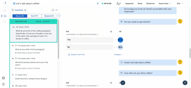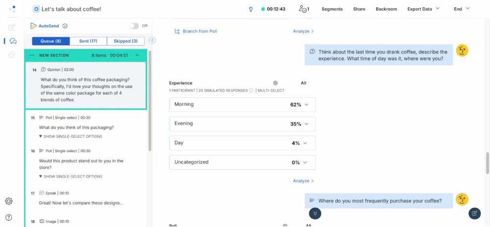 - Remember that for questions other than Branching, all participants will be asked to respond. When asking probing questions, try not to be too pointed or to direct questions to one specific segment of the participants. You want to make sure everyone feels like they can respond to the questions appropriately.