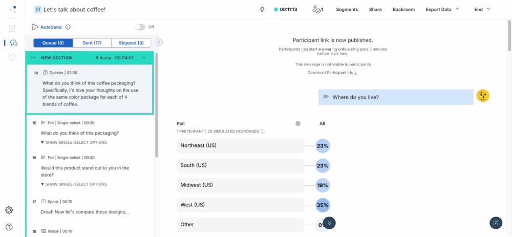Recommended Duration (Remesh Live): Onboarding polls do not have a duration associated, they are filled out before the conversation starts